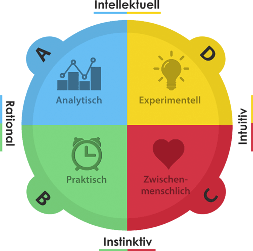 Diese ist weltweit als Modell zur Potenzialanalyse sowie zur Persönlichkeits-, Team- . Das Vier-Quadranten-Modell des Gehirns (Whole Brain Thinking-Modell) ist ein Modell zur Denkstilanalyse entwickelt von dem Amerikaner Ned Herrmann (1922–1999). Denkstilanalyse und Denkstilmanagement - ZWP online - das.